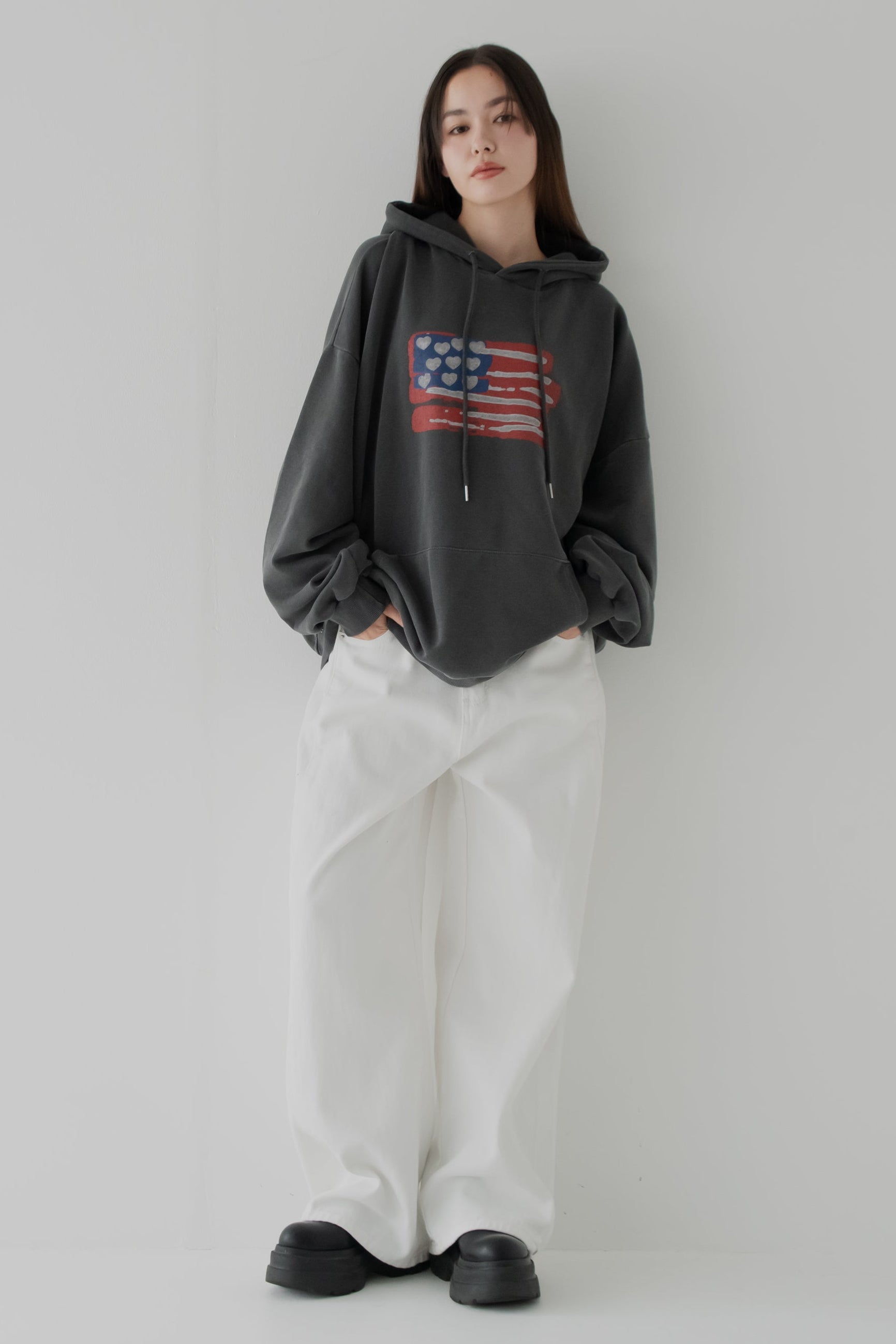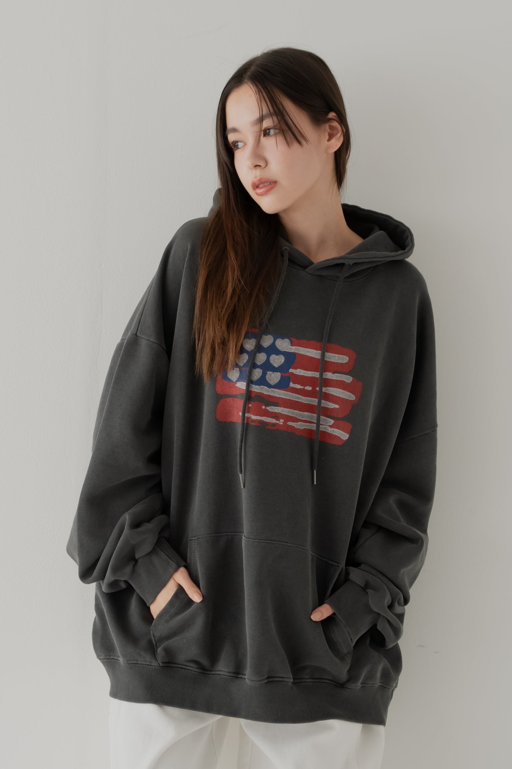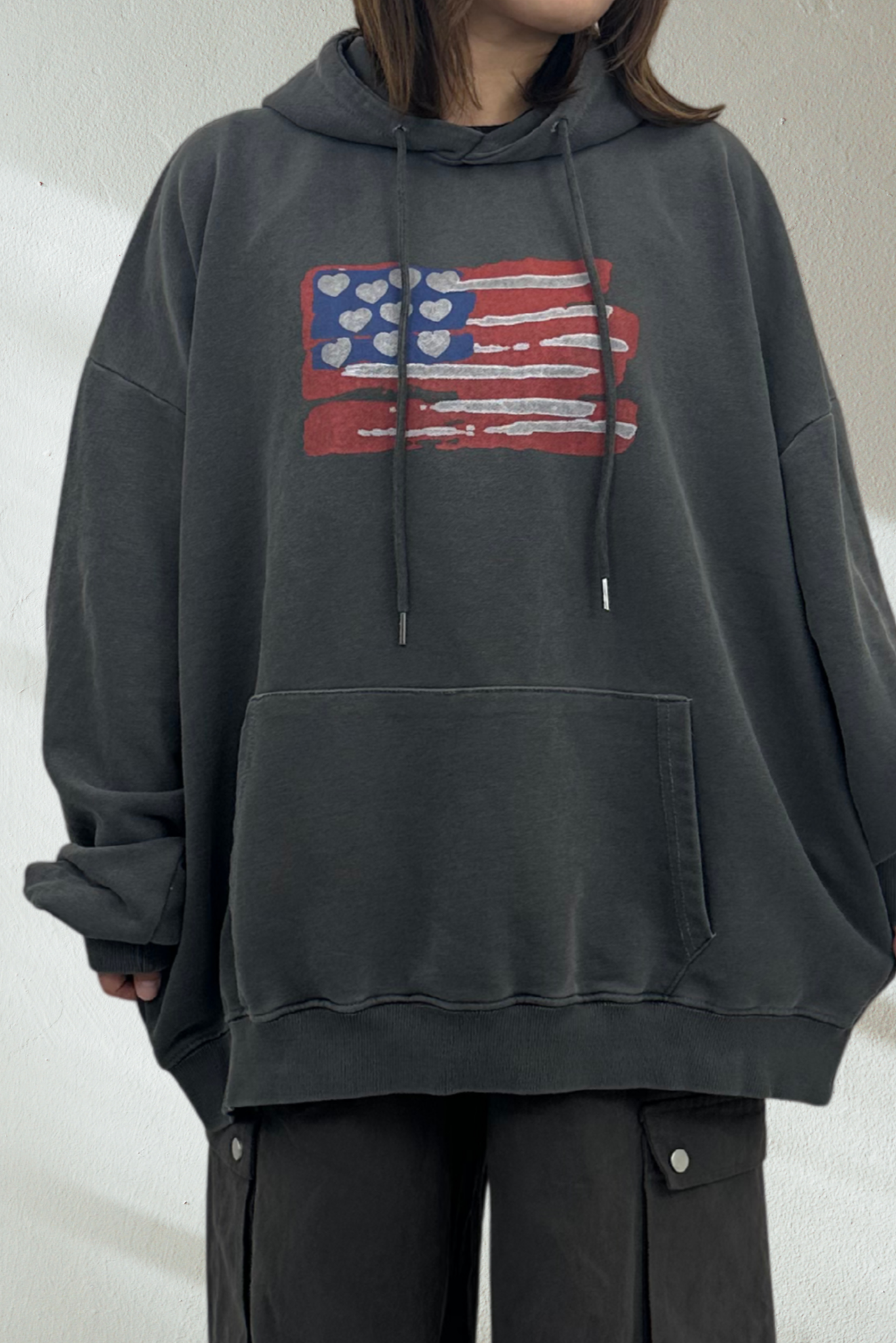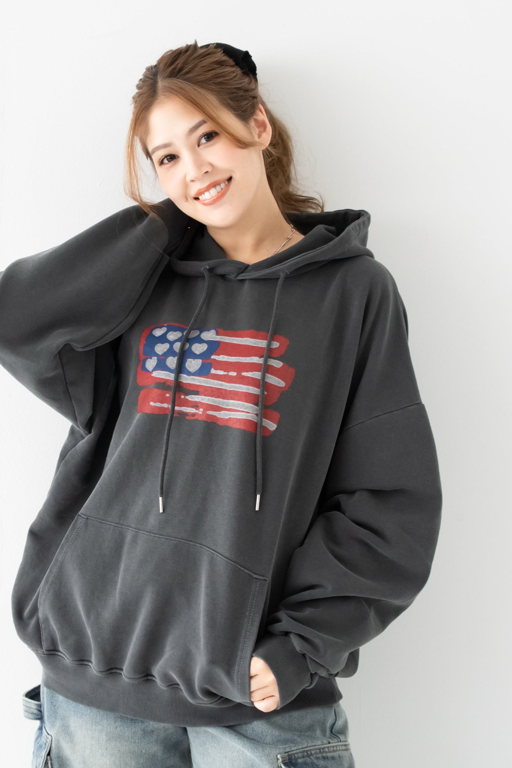 擦れたようなアメリカ国旗のプリントがこなれた雰囲気を演出♪