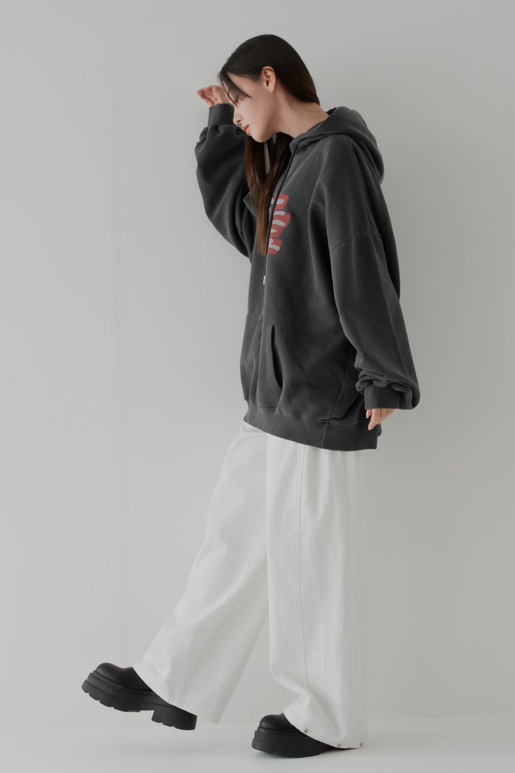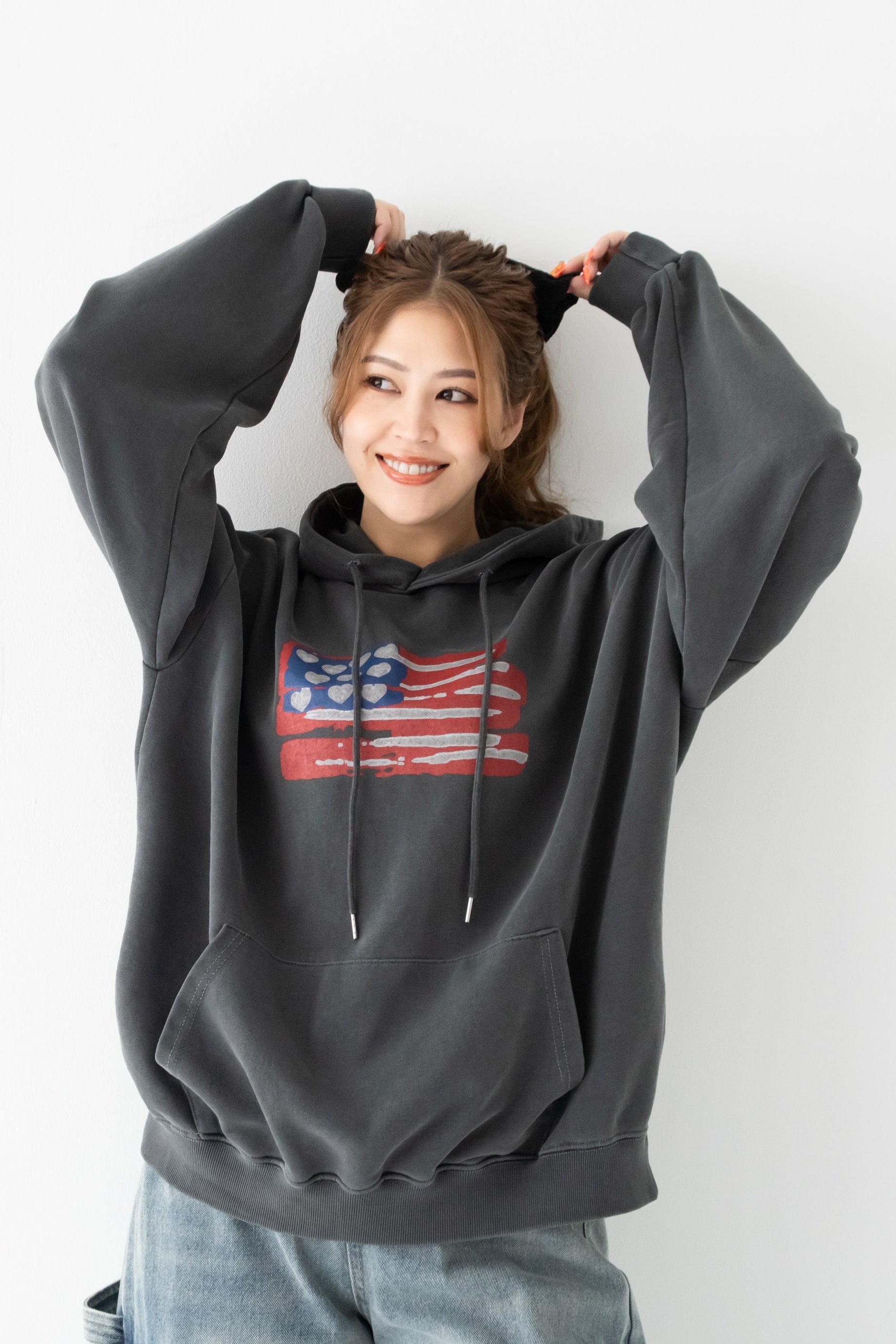 【くぅちゃんコラボアイテム】ウォッシュブラックユニセックスフーディー