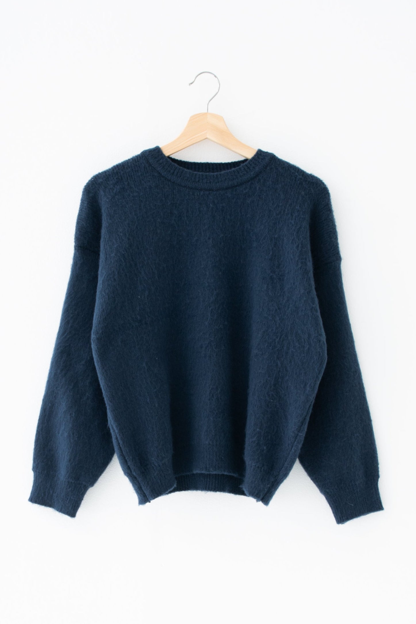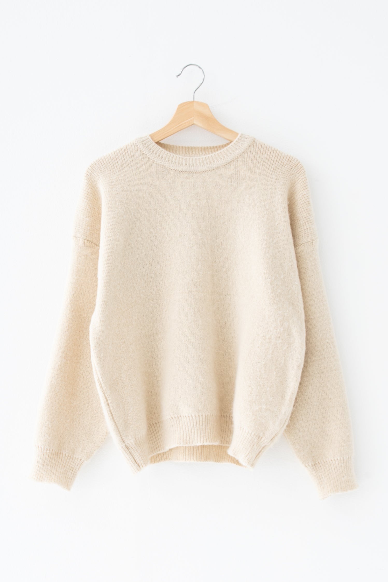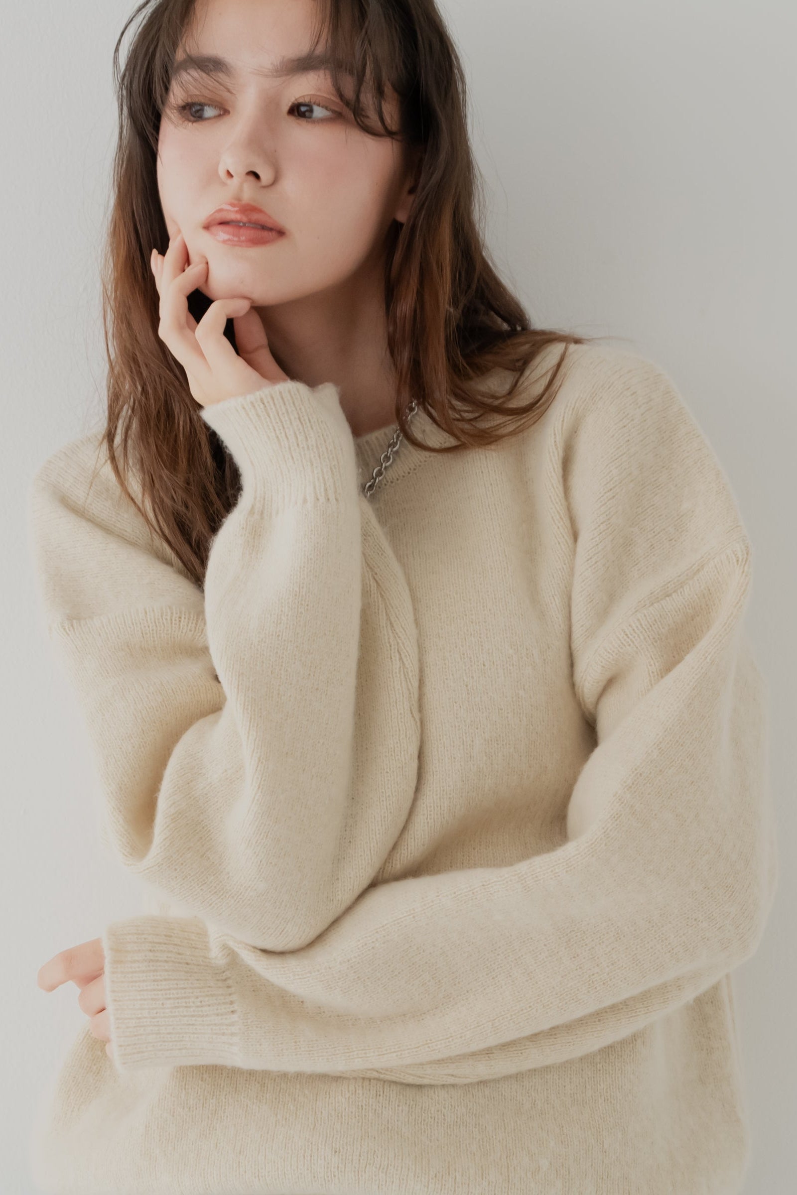 柔らかな風合いと優しい肌触りが魅力のニット。チクチクしにくい優しい着心地で、着るだけでリラックス感のある旬のスタイルが完成します。カラーは、ベーシックで着回し力抜群の2色をご用意。顔周りをパッと明るく見せる柔らかなアイボリーと、大人っぽい落ち着いた雰囲気を演出するシックなネイビーです。首元は詰まりすぎないクルーネックなので、ネックレスを合わせても素敵に決まります。これからの季節に欠かせない万能な一枚です。