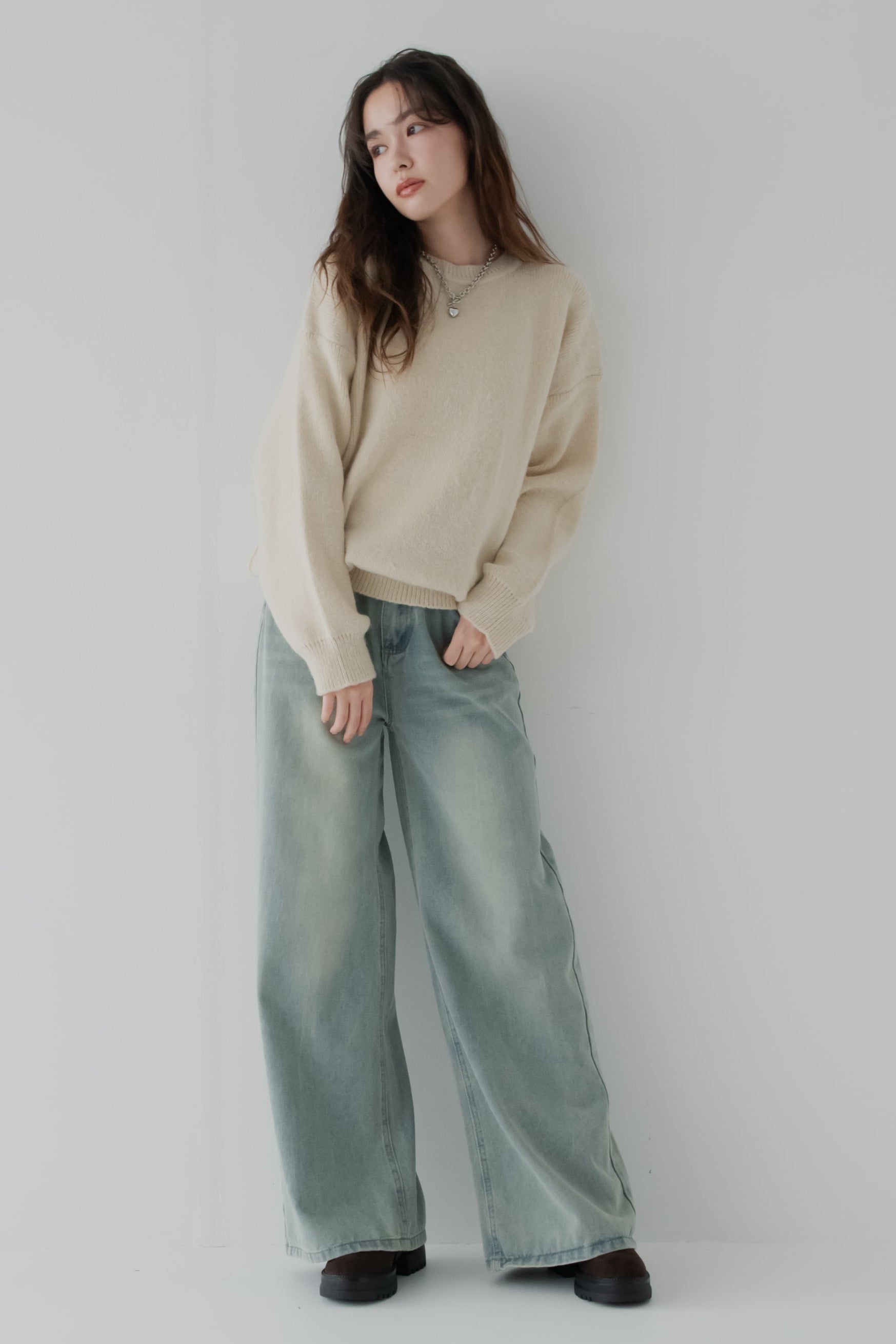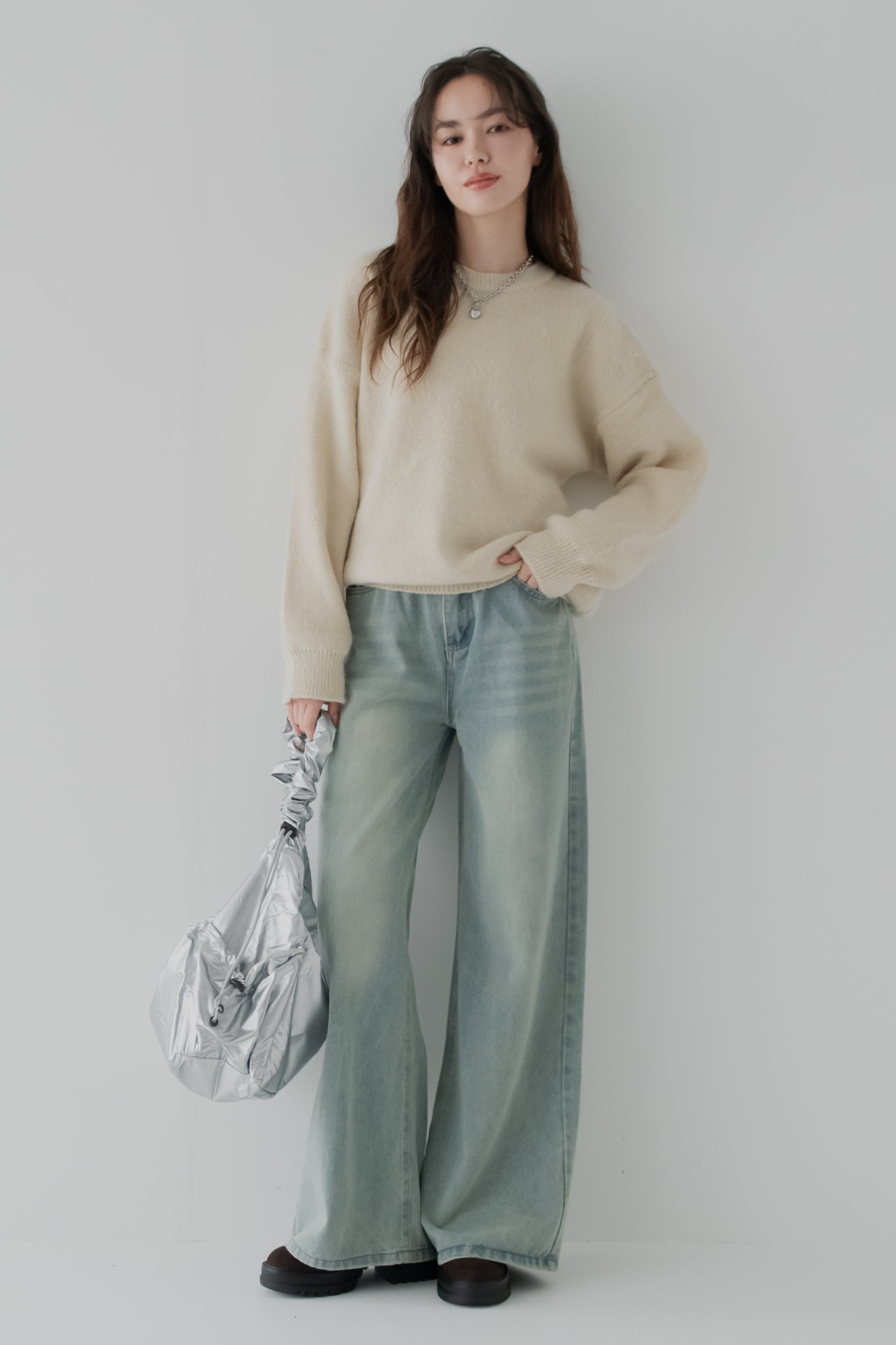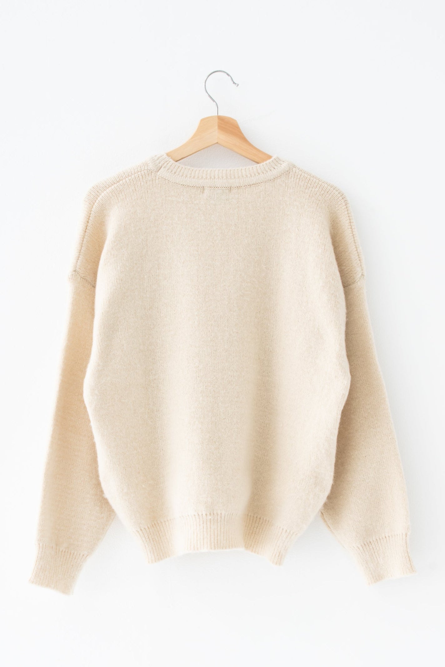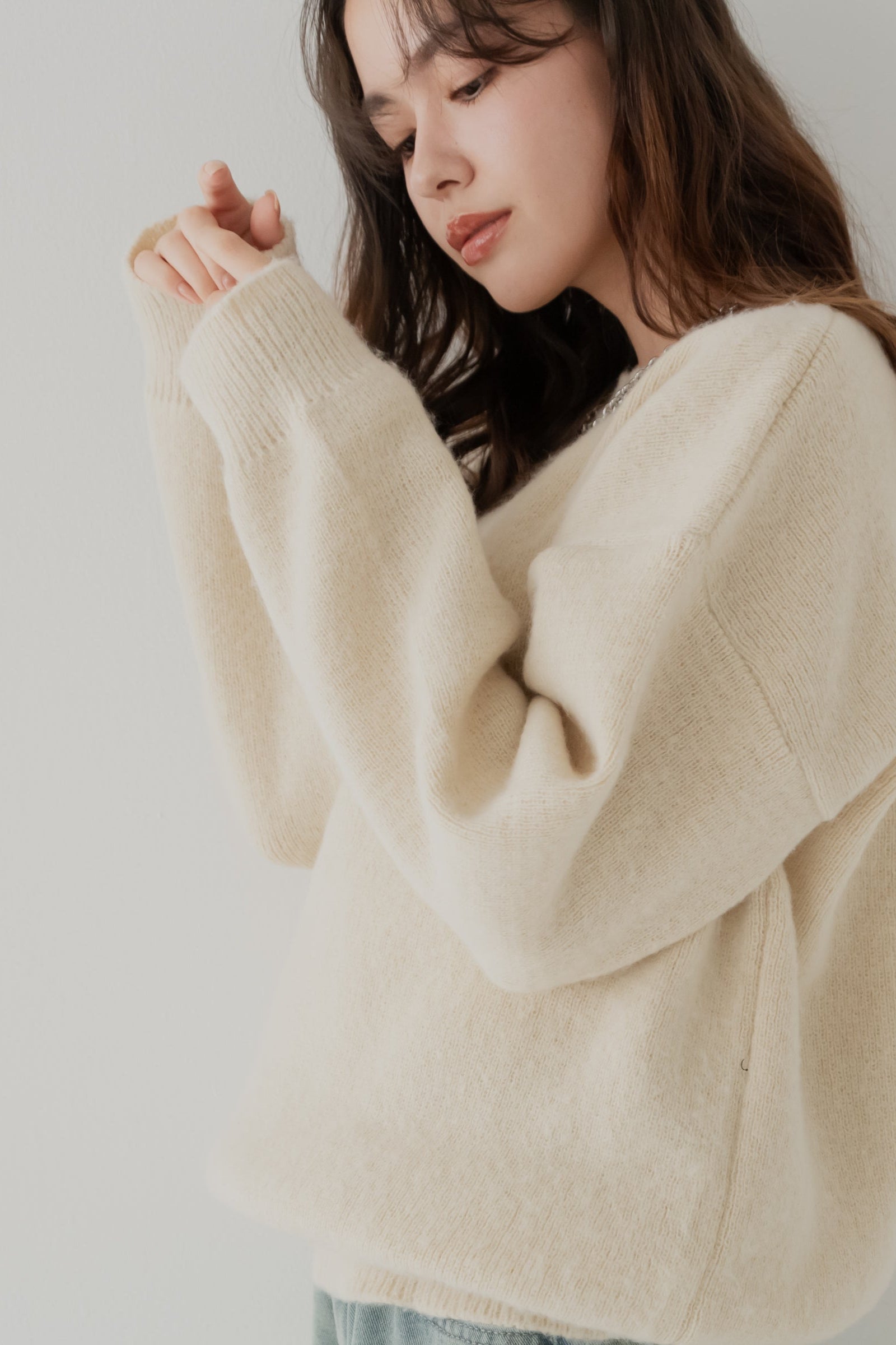 柔らかな風合いと優しい肌触りが魅力のニット。チクチクしにくい優しい着心地で、着るだけでリラックス感のある旬のスタイルが完成します。カラーは、ベーシックで着回し力抜群の2色をご用意。顔周りをパッと明るく見せる柔らかなアイボリーと、大人っぽい落ち着いた雰囲気を演出するシックなネイビーです。首元は詰まりすぎないクルーネックなので、ネックレスを合わせても素敵に決まります。これからの季節に欠かせない万能な一枚です。